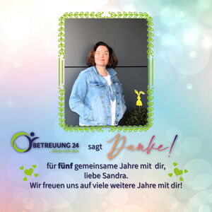 Wir feiern ein ganz besonderes Jubiläum: Unsere geschätzte Kollegin Sandra Rose ist seit nunmehr fünf Jahren ein fester und wertvoller Bestandteil des Teams von Betreuung 24.